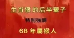 生肖猴的後半輩子: 特彆強調 68 年屬猴人, 不是一般的准!