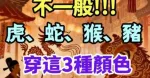 今年除夕不一般!!! 虎、蛇、猴、豬,穿這3種顏色, 好運一整年