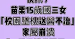 快訊/15歲國三女「校園墜樓送醫不治」 家屬崩潰「一看手機傻眼了…」