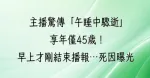 主播驚傳「午睡中驟逝」享年僅45歲! 早上才剛結束播報…死因曝光