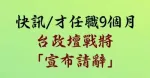 快訊/才任職9個月! 台政壇戰將「宣布請辭」