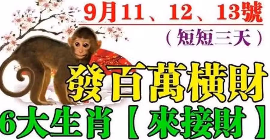 生肖猴在之前一段時間裡的生活雖然很不錯順心,但好在沒有給屬猴的人造成什麼較大的影響。而 在9月11、12 、 13號這短短三天的時間裡就會有大運勢,到時候短短三天便有百萬橫財可發,生肖猴卻迎來了一場大運,而且還是橫財大運,讓屬猴的人在這兩天的時間裡會有百萬橫財進賬,所以生肖屬猴的各位快快來接財,錯過就沒了。