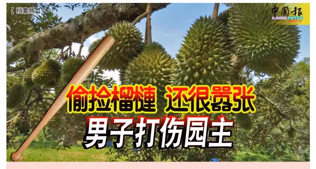 他聲稱,不久後,一名居住在附近的男子竟在榴槤園內偷撿榴槤,被他發現後,對方竟持巴冷刀恐嚇其妻子和孩子。