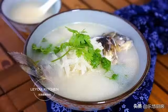 第一步:準備食材。鯽魚2條、白蘿蔔半根、姜1小塊、大蔥1段。