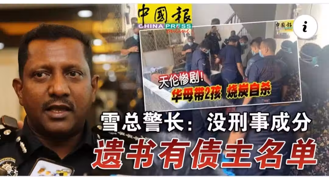 ◤母帶兒女燒炭自殺◢雪總警長:沒刑事成分 遺書有債主名單
