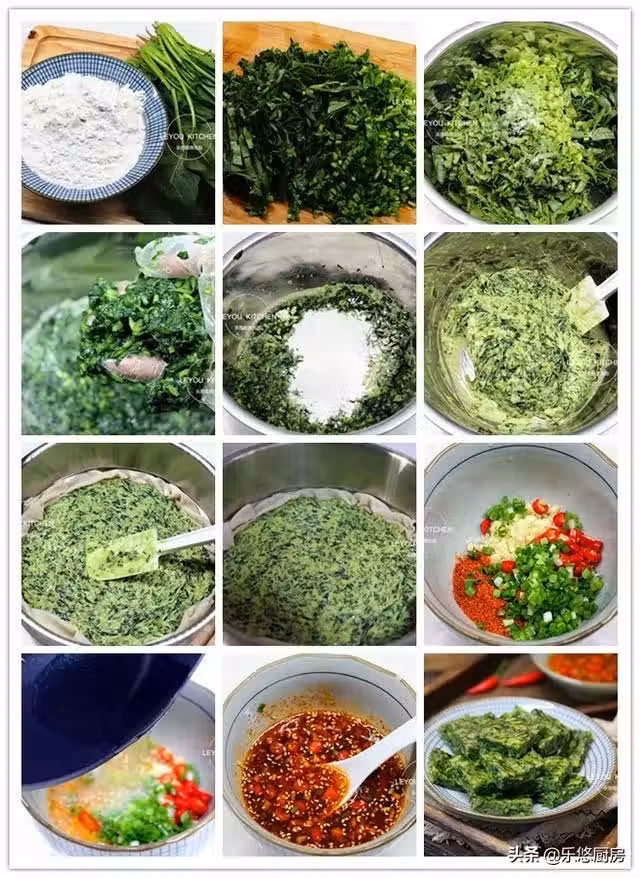 3、 麵粉不要一次性的放入菠菜中,一定要一點點的來加。一次性放太多的話,不易掌握水量,口感或硬或軟。