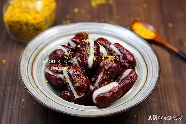 第一步:準備食材。大棗150克、糯米粉80克、糖桂花適量。(糖桂花也可以換成蜂蜜。)