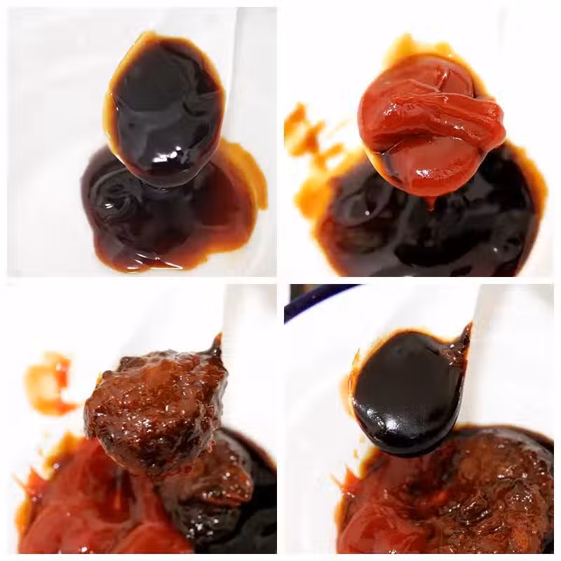 4、接下來調製醬汁:蚝油2勺、番茄醬2勺、黃豆醬2勺、海鮮醬2勺、白砂糖1勺、雞精1勺以及澱粉1勺。