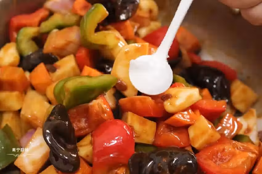 11、蓋上鍋蓋開小火燜上12分鐘(根據自己家的電磁爐功率或者燃氣爐的活力增減時間),悶好後,開蓋可以加入一些醬料繼續燜10分鐘即可