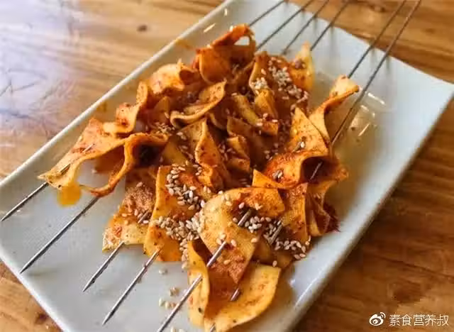 食材:豆腐皮,鹽,辣椒粉,孜然粉,白芝麻,花椒粉,十三香,醬油