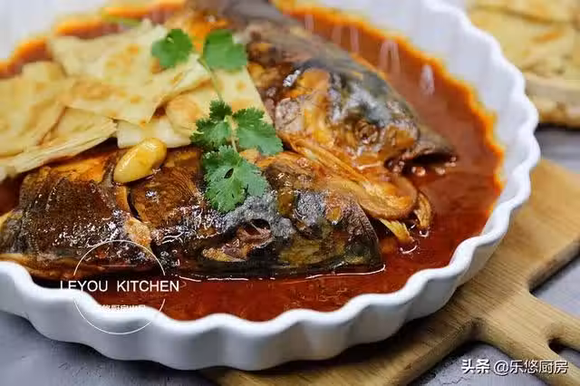 第一步:準備食材。花鰱魚頭1個、蔥姜蒜適量、八角2個、花椒十幾粒、干辣椒2個、桂皮1塊、甜麵醬2勺、黃豆醬2勺、郫縣豆瓣醬1勺。(花鏈魚頭個較大,在家很難切開,建議提前讓賣魚的老闆幫忙收拾好,並從頂部切開,如圖。)