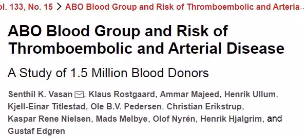 O型血與其他血型的對比後發現,O型血發生下肢深靜脈血栓的風險低1.92倍。在心肌梗死和腦卒中的動脈血栓風險程度上,非O型血與O型血的對比雖不明顯,但非0型血仍略高於O型血人群。