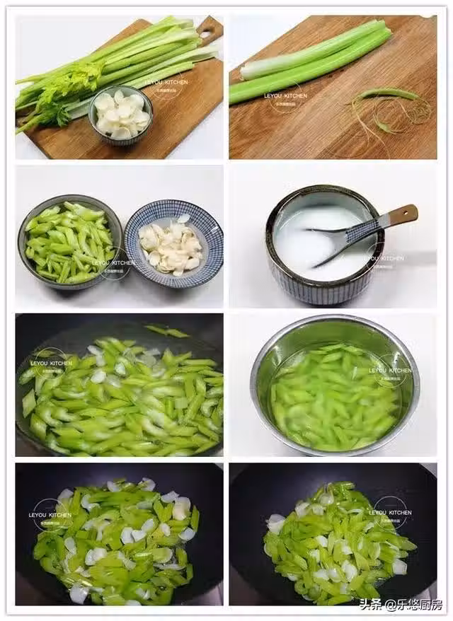 第七步:鍋中倒入少許油燒熱,把西芹和百合撈出瀝干水分然後放入鍋中快速翻炒均勻。