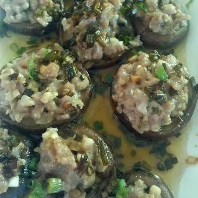 另起鍋加少量油,7分熱加入剩下的蔥花,炒至蔥花成褐色,淋上蘑菇。一道香噴噴的蘑菇蒸肉就完成啦!