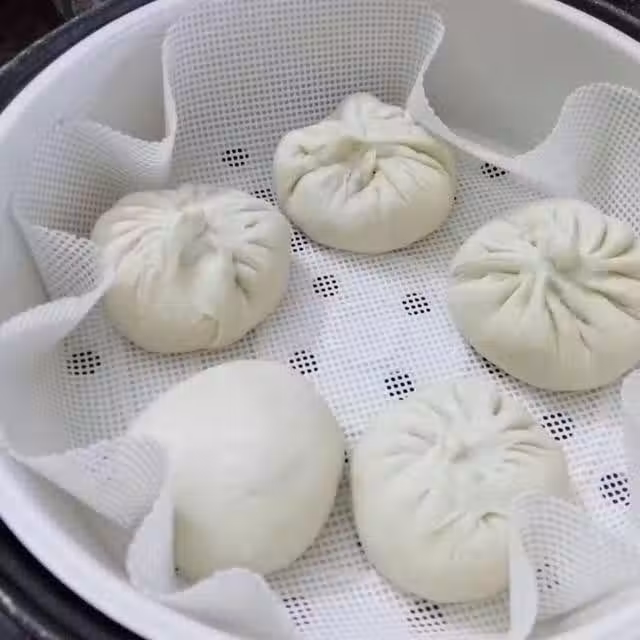 包子放在蒸籠上,鍋里放入比溫水高一點溫度的水,進行二發,15~18分鐘即可。直接開火蒸,水開後再蒸15分鐘,中間不要開蓋。蒸好後過五分鐘再打開蓋子