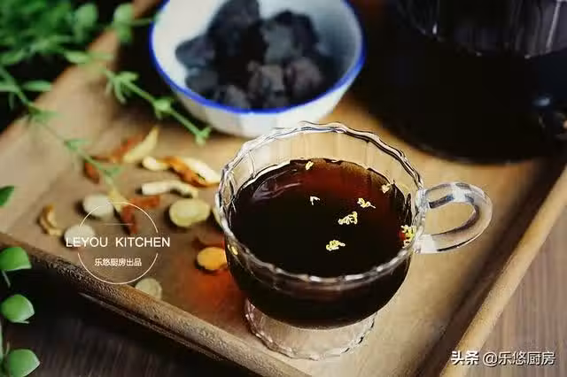 第一步:準備食材。烏梅30克、山楂20克、陳皮10克、甘草5克、洛神花3個、干桂花3克、冰糖50克。(首先,做酸梅湯一定要用冰糖。若使用白糖,口感甜膩,與冰糖相差許多。其次,洛神花、干桂花如果沒有,可以不用。)
