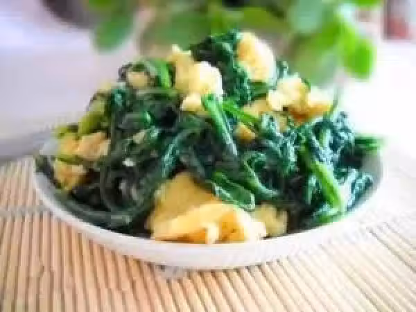 茼蒿、植物油、鹽、白砂糖、味精、香油 做法:茼蒿洗淨,控幹水分,放入熱油鍋中大火煸炒,顏色變成深綠色之後,加入白糖、味精,炒勻後淋上香油就可以出鍋了。