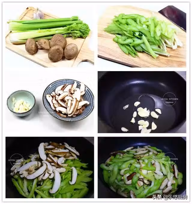 1、 這道菜很簡單,幾乎沒有什麼難度。只需要注意芹菜和香菇在切片的時候,儘量切的薄厚一致。