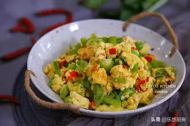 第四步:把尖椒碎和剁椒放入雞蛋液中。