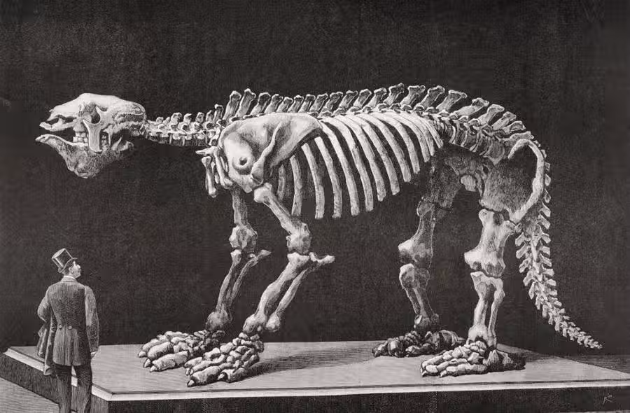 大地獺具有特殊的外形和適應特徵。它們有強壯的身體和四肢,後肢更長且更強壯,適合支撐其龐大的體重。前肢有著強大的爪子,用於挖掘和抓取植物。大地獺的頭部相對較小,嘴部有著長長的舌頭,用於攝食。大地獺是植食性動物,以植物、樹葉和樹枝為食。它們通常以站立的姿勢吃食,用強大的前肢抓取植物,並用舌頭將其拉向口中。