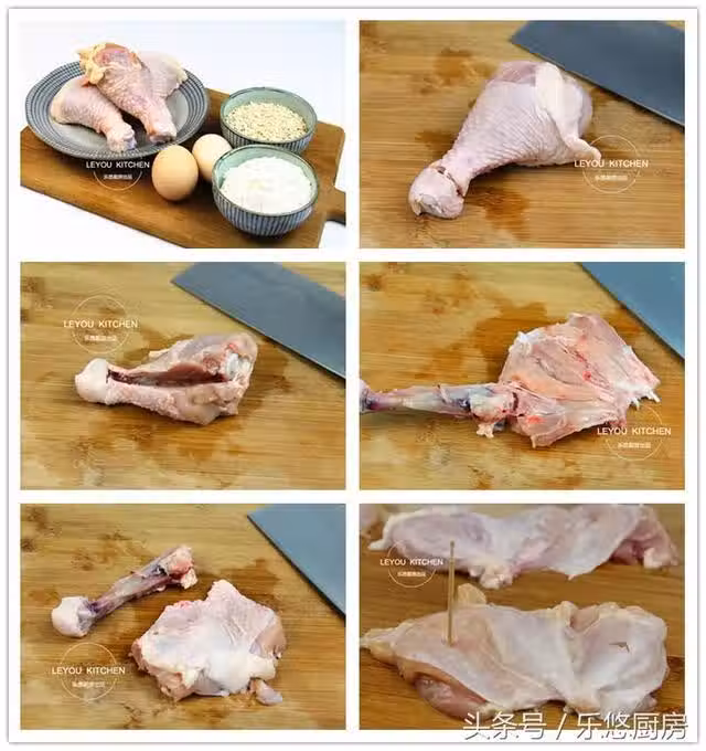 第六步:把雞皮撕下去,然後用牙籤在雞肉上扎一些小孔,如圖。(這樣更便於入味。)