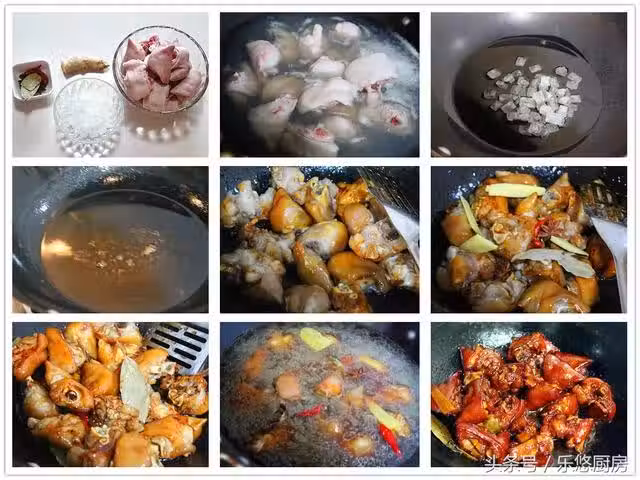 4、燉豬蹄時間比較久,可以選擇用高鍋來燉。高壓鍋燉好後,再轉到炒鍋中收汁。