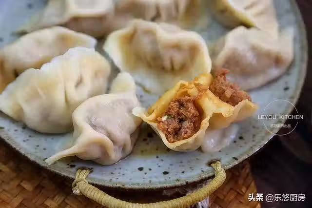 第三步:開始和面。往麵粉中緩緩的倒入適量的溫水,和成稍硬一點的麵糰。然後蓋上保鮮膜,靜置1個小時備用。(麵糰靜置的時間一定要夠長,否則會影響餃子皮的口感。)