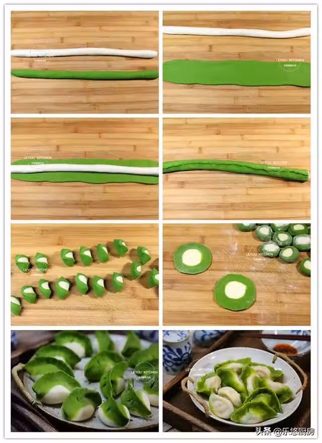 2、 做這道餃子,兩種麵糰的軟硬程度、大小一定要相當。