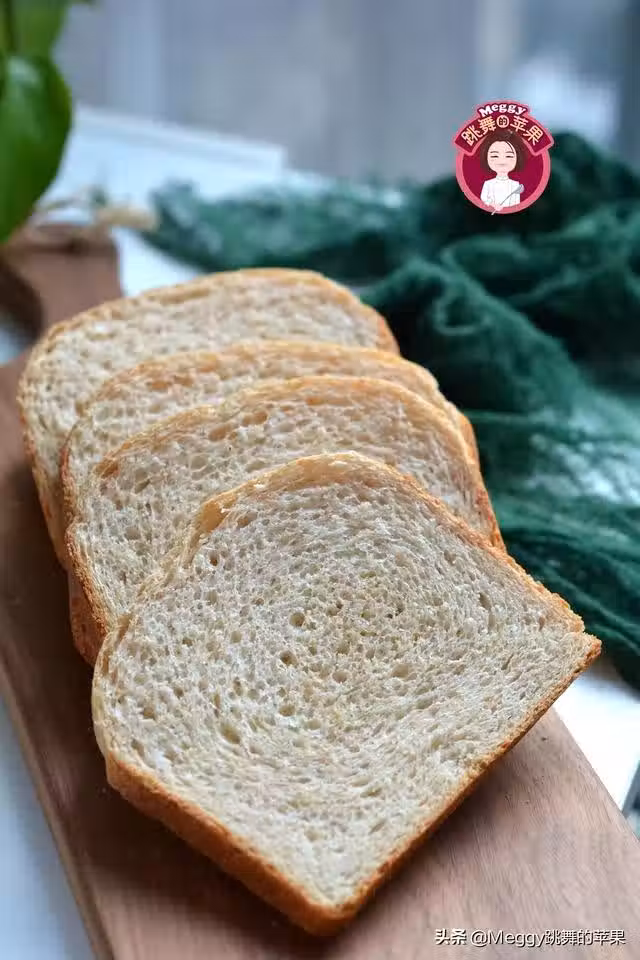 【材料】全麥麵包粉300克,乾酵母2.5克,鹽3克,白糖40克,淡奶油50克,涼水155克,黃油25克