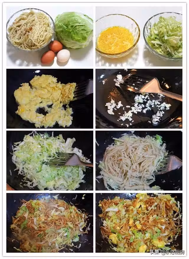 第五步:將圓白菜絲放入鍋中煸炒勻。(這個時候要開大火)