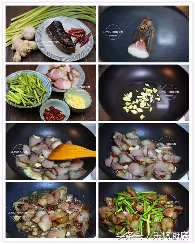 第五步:將臘肉放入鍋中煸炒至肉色透明。