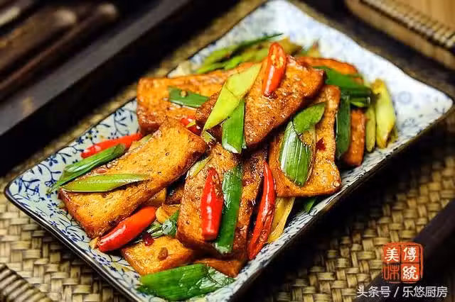 第一步:準備食材。滷水豆腐1塊、青蒜苗幾根、紅辣椒適量、蔥姜蒜適量。