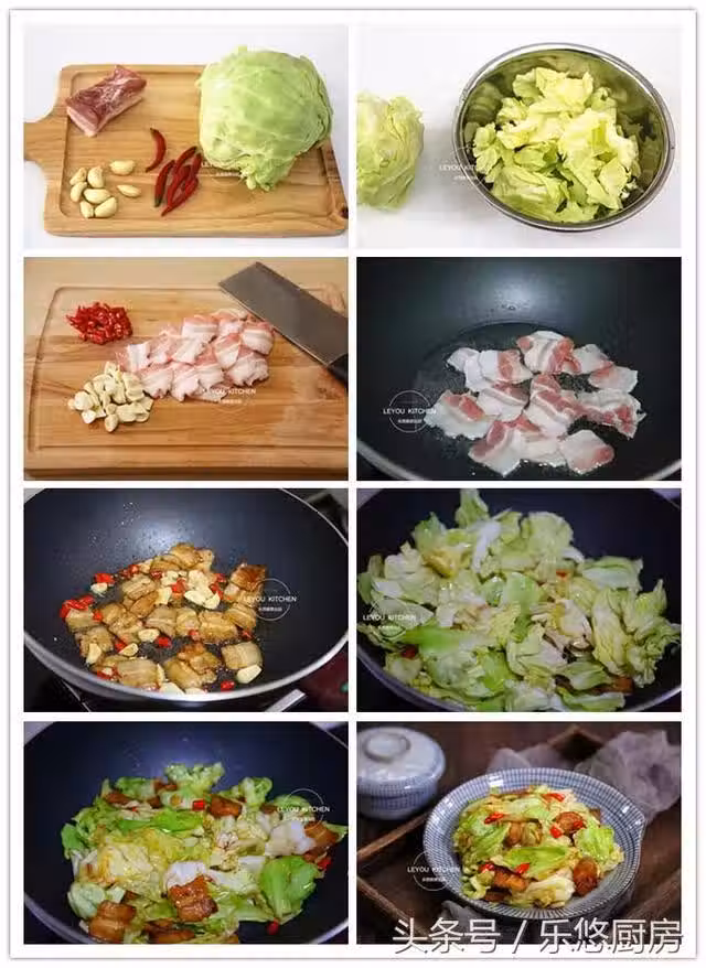第六步:把圓白菜放入鍋中,轉大火快速翻炒均勻。