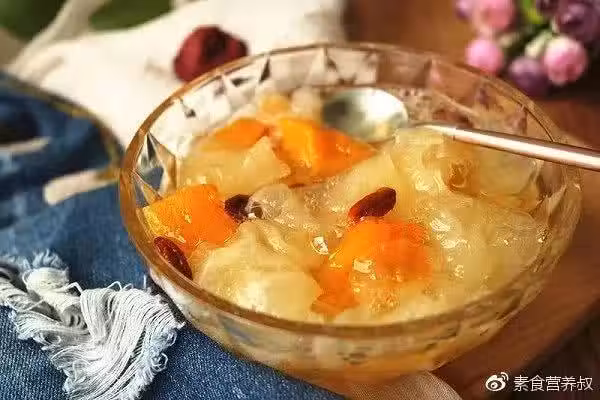 2. 食材放入砂鍋,加入適量清水,煮熟後加入冰糖和枸杞,軟糯清甜的南瓜銀耳羹就做好了。