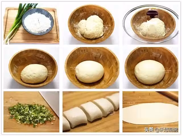 第十步:抹上一層食用油,撒上少許乾麵粉,再撒上香蔥末、少量的鹽,如圖。