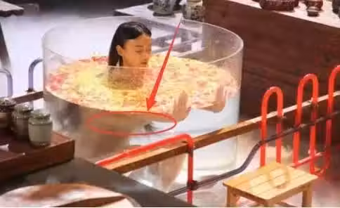 「蕃茄雞蛋湯」沐浴,袁珊珊為了拍好這部劇也是蠻拼的,話說,這一看就是在泡澡好嗎,單看頭部效果還是比較正常的,只是這個完整的畫面怎麼看,都想笑。