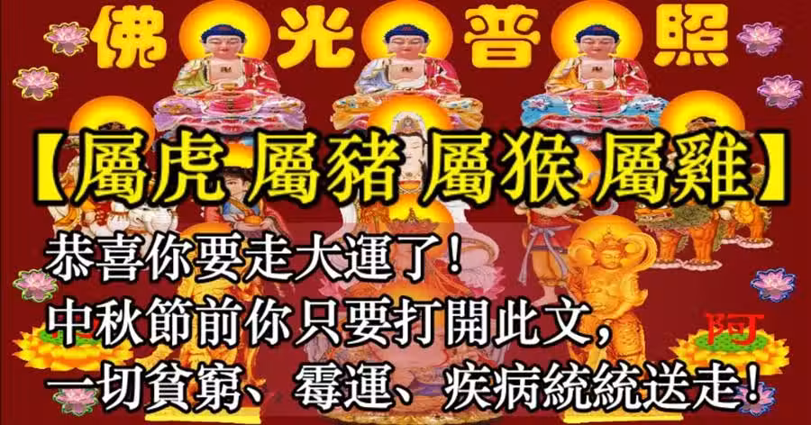 【屬虎 屬豬 屬猴 屬雞】恭喜你要走大運了!中秋節前你只要打開此文,一切貧窮、霉運、疾病統統送走!