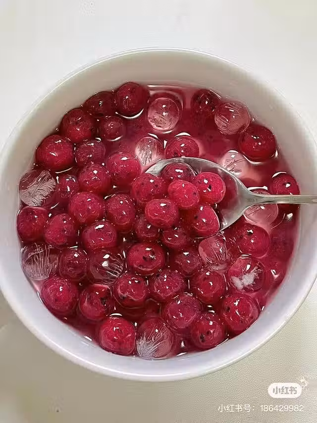 6.撈出過涼水更Q彈口火龍果+糖抗勻煮沸