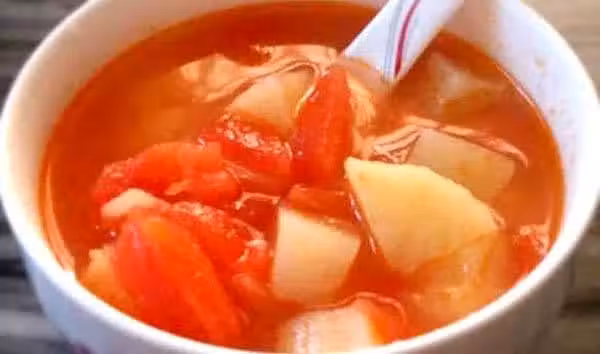 5、最後加圓白菜,等所有的材料煮爛就可以了。這個湯本身味道香濃,不需要加香油。小貼士:蕃茄中含有人造味精的主要成份谷氨酸鈉,是天然的提鮮劑,用蕃茄做鍋底,無論是做菜還是煮麵條,下麵片,味道都非常鮮美。
