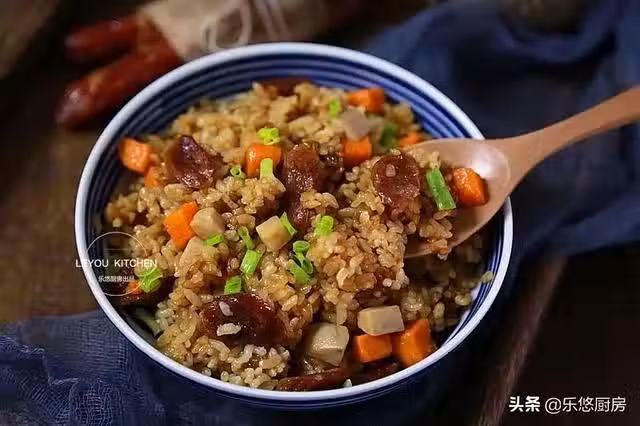 臘腸杏鮑菇燜飯,在燜制的過程中,杏鮑菇和米飯吸收了臘腸的香氣和油脂,做好後米飯顆粒飽滿、入味,杏鮑菇脆嫩,嚼起來特別香。做法更是簡單,把食材、調味料統統放到電飯鍋里就可以,全程不用聞油煙,不用在灶前煙燻火燎,非常貼心。