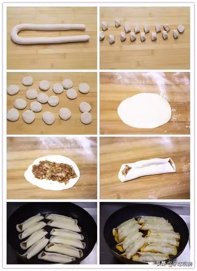 第十五步:平底鍋中抹適量的油,然後將捏好的鍋貼放入鍋中。再放入一小碗水,然後蓋好鍋蓋,小火將鍋中的水燒乾。