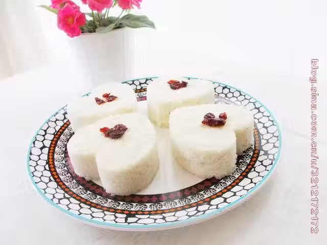 (三能心形慕斯模4個);大米4杯(我用350克);顆粒黑芝麻粉2匙(我沒放);水適量;白糖8大勺(我用50克)