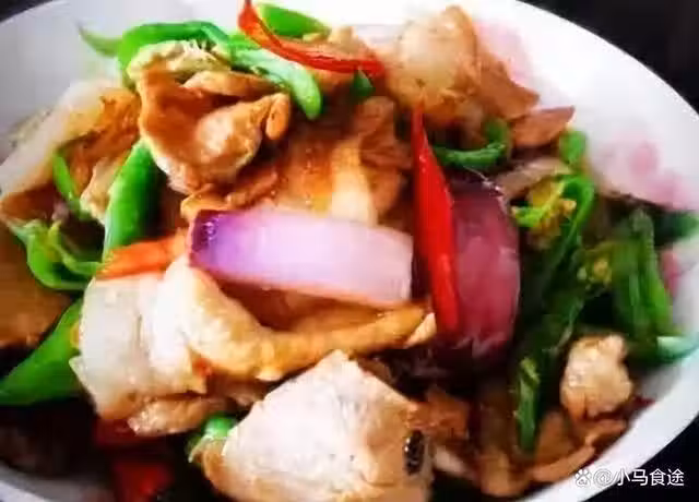 1.五花肉處理乾淨,切成薄片,姜蒜切片備用,辣椒和胡蘿蔔切片備用。
