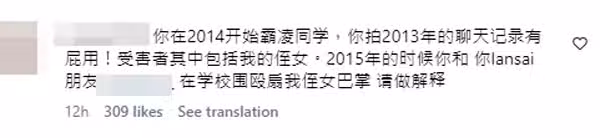 雷欣蕙昨晚通過錄視頻方式,向曾經被她欺負的2名同學道歉後,網友紛紛湧入其面子書及Instagram的最新貼文下留言。