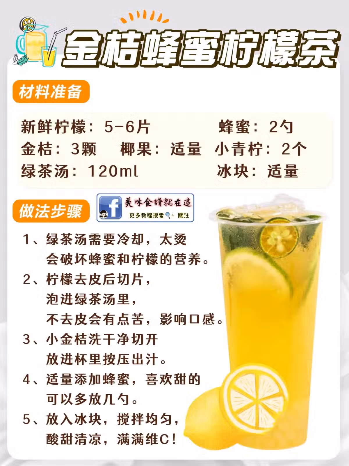 📋材料準備:新鮮檸檬5.6片、蜂蜜2勺、金桔3顆、