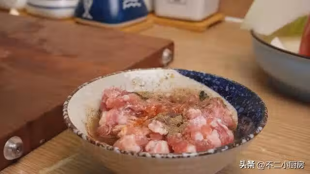 3、在肉餡中加入少許食用鹽,加入一些胡椒粉去腥,來上一些料酒,再來點生抽醬油提味,用手給它抓拌均勻,這裡一定要多抓拌一下,讓肉充分吸收調料的味道,這樣味道才更足。