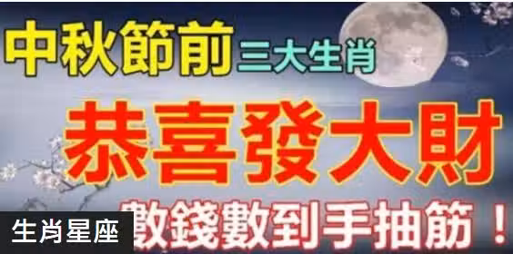 中秋節前恭喜發大財,三大生肖數錢數到手抽筋!!!