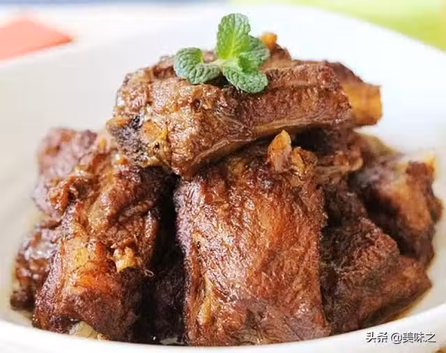 排骨適量、鹽適量、老抽適量、蔥適量、八角適量、桂皮適量、橙皮適量、雞精適量、料酒適量、冰糖適量、姜適量、蒜適量。