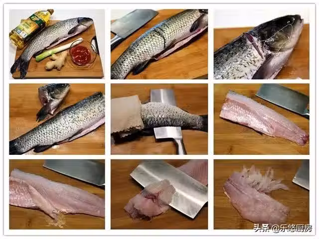 第八步:現在就剩下一塊完整的魚肉了,我們開始切花瓣。