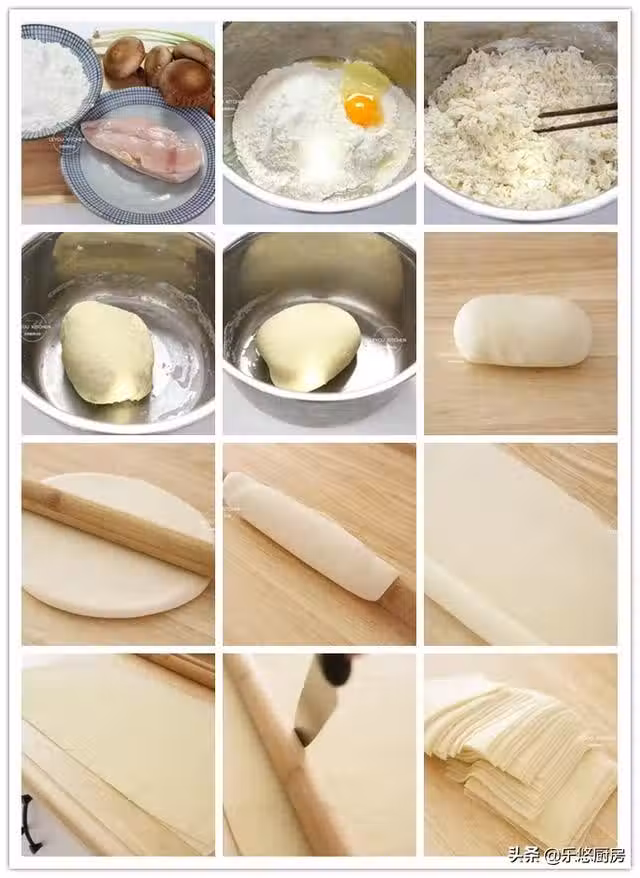 第十二步:然後把條切成塊狀,餛飩皮就做好了。做好的餛飩皮暫時不用的話,一定要用保鮮膜包起來,不然容易變干。